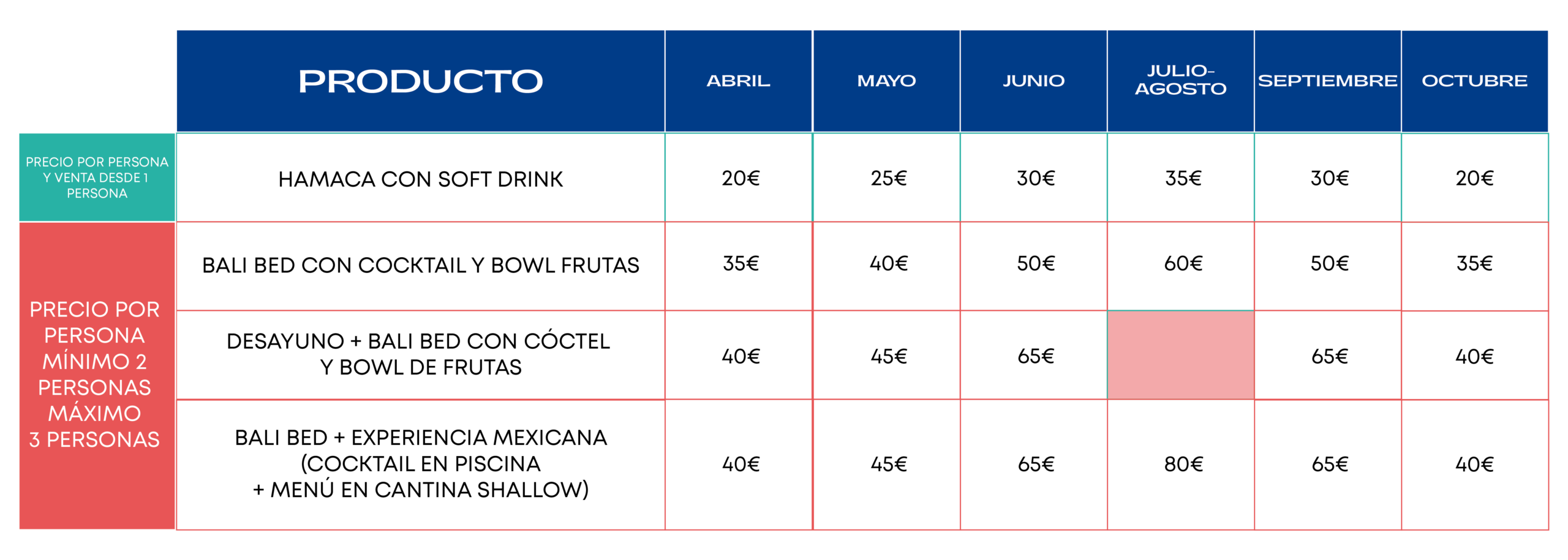 con CÓCTEL PISCINA + MENÚ EN CANTINA SHALLOW (MÍNIMO 2 PAX)
